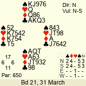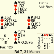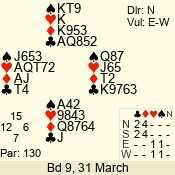 | 3 NT | E | +1 | -630 | 5 | 05 - 12 | 7 | 2 |
