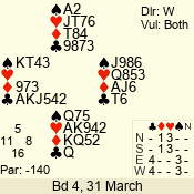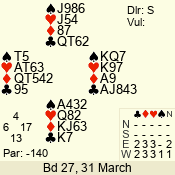 | 3 NT | W | +3 | -690 | T | 10 - 04 | 4 | 1 |