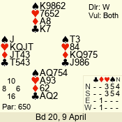 | Con | Dc | Res | Score | Ld | Pairs | Rd | Tbl | | 3 N | S | +1 | 630 | 6 | 04 - 04 | 1 | 4 |