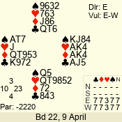 | Con | Dc | Res | Score | Ld | Pairs | Rd | Tbl | 4  | S | = | 420 | K | 03 - 05 | 8 | 3 |