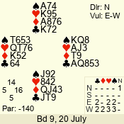 | Con | Dc | Res | Score | Ld | Pairs | Rd | Tbl | | 3 N | W | -3 | 150 | 6 | 01 - 02 | 6 | 1 |