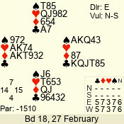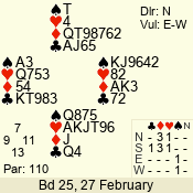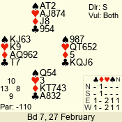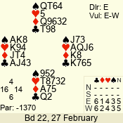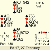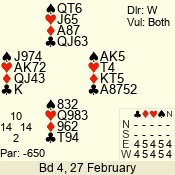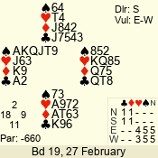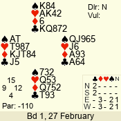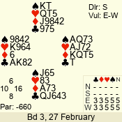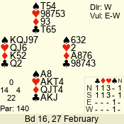 | Con | Dc | Res | Score | Ld | Pairs | Rd | Tbl | | 3 N | N | +2 | 660 | 7 | 11 - 06 | 3 | 2 |