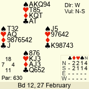 | Con | Dc | Res | Score | Ld | Pairs | Rd | Tbl | 4  | S | = | 620 | Q | 12 - 05 | 5 | 1 |