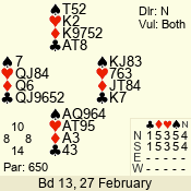 | Con | Dc | Res | Score | Ld | Pairs | Rd | Tbl | | 3 N | S | +2 | 660 | 4 | 11 - 02 | 8 | 2 |