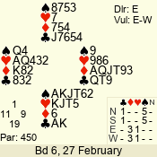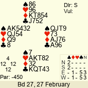 | Con | Dc | Res | Score | Ld | Pairs | Rd | Tbl | 4  | S | +1 | 450 | A | 08 - 05 | 9 | 5 |