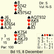 Monday: Christmas Handicap Pairs 8 December