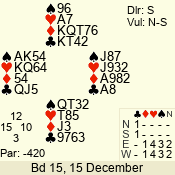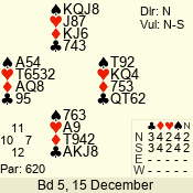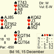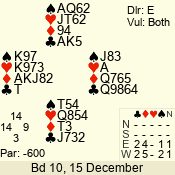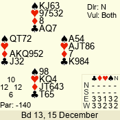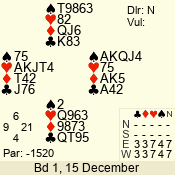 | Con | Dc | Res | Score | Ld | Pairs | Rd | Tbl | | 1 N | S | +2 | 150 | T | 04 - 07 | 12 | 4 |