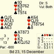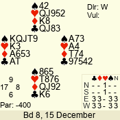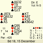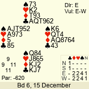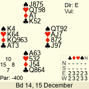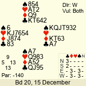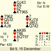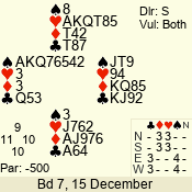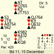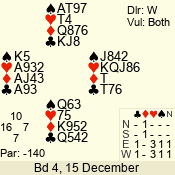 | Con | Dc | Res | Score | Ld | Pairs | Rd | Tbl | | 3 N | E | -4 | 200 | 4 | 03 - 07 | 7 | 3 |