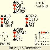 | Con | Dc | Res | Score | Ld | Pairs | Rd | Tbl | | 1 N | S | +2 | 150 | T | 04 - 07 | 12 | 4 |