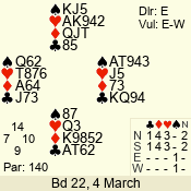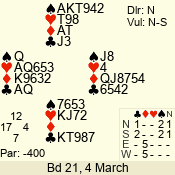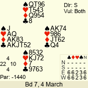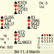 | 3 NT | S | +4 | 520 | 4 | 11 - 07 | 5 | 11 |