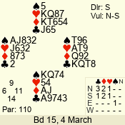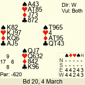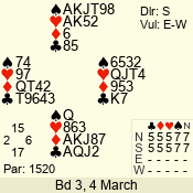 | 3 NT | S | +4 | 520 | 2 | 12 - 09 | 4 | 12 |
