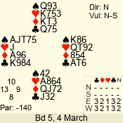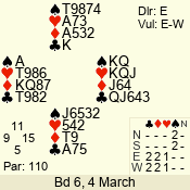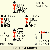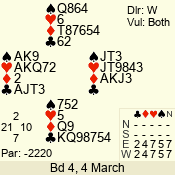 | 3 NT | W | +4 | -720 | 9 | 02 - 13 | 3 | 2 |