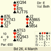 | Con | Dc | Res | Score | Ld | Pairs | Rd | Tbl | 4  | N | +1 | 650 | Q | 12 - 10 | 3 | 12 |