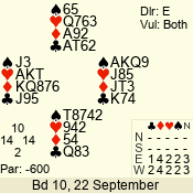 | 3 NT | E | +1 | -630 | 4 | 10 - 07 | 1 | 3 |