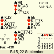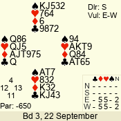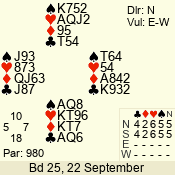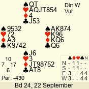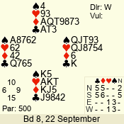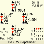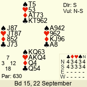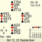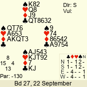 | 3 NT | S | +1 | 430 | Q | 03 - 01 | 6 | 2 |