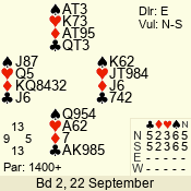 | 3 NT | E | +1 | -630 | 4 | 08 - 03 | 3 | 1 |