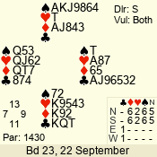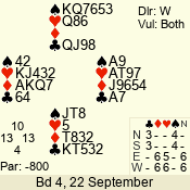 | 3 NT | W | +1 | -430 | 9 | 04 - 07 | 6 | 4 |