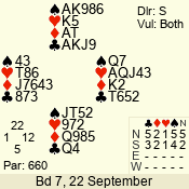 | 3 NT | W | +3 | -690 | J | 06 - 04 | 2 | 2 |