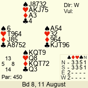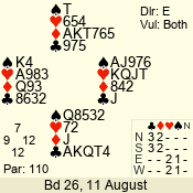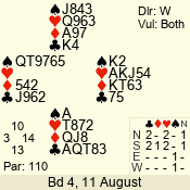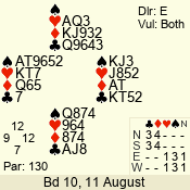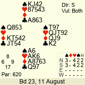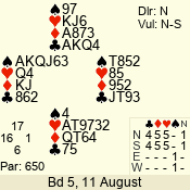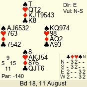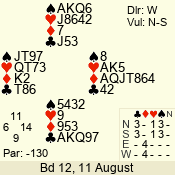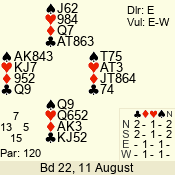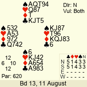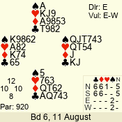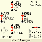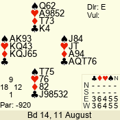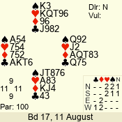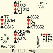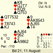 | 3 NT | S | +1 | 430 | 2 | 05 - 11 | 1 | 6 |