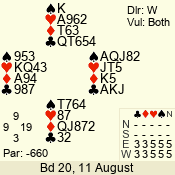 | 3 NT | W | +2 | -660 | 6 | 04 - 07 | 8 | 3 |