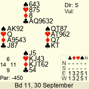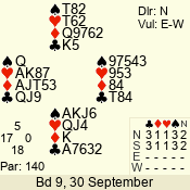 | Con | Dc | Res | Score | Ld | Pairs | Rd | Tbl | | 1 N | N | +2 | 150 | A | 04 - 06 | 10 | 4 |