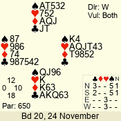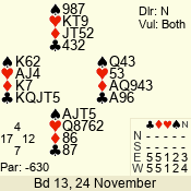 | Con | Dc | Res | Score | Ld | Pairs | Rd | Tbl | | 3 N | S | +2 | 660 | 4 | 08 - 04 | 5 | 8 |