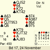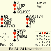 | Con | Dc | Res | Score | Ld | Pairs | Rd | Tbl | | 3 N | S | +2 | 460 | 3 | 03 - 03 | 11 | 3 |