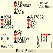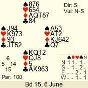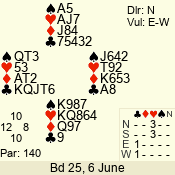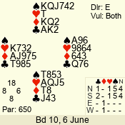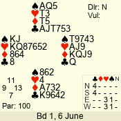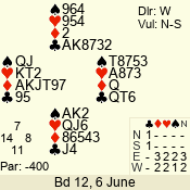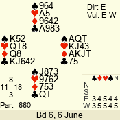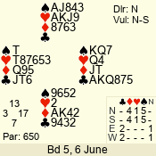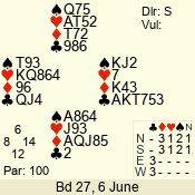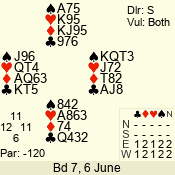 | Con | Dc | Res | Score | Ld | Pairs | Rd | Tbl | 5  | S | +1 | 420 | 6 | 04 - 07 | 7 | 4 |