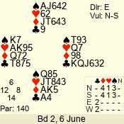 | Con | Dc | Res | Score | Ld | Pairs | Rd | Tbl | | 2 N | N | +2 | 180 | J | 04 - 05 | 9 | 4 |