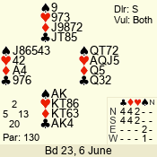 | Con | Dc | Res | Score | Ld | Pairs | Rd | Tbl | 2  | S | +2 | 130 | Q | 03 - 06 | 7 | 3 |
