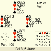 | Con | Dc | Res | Score | Ld | Pairs | Rd | Tbl | | 3 N | E | -2 | 100 | K | 03 - 03 | 1 | 3 |