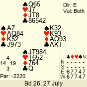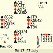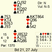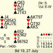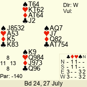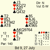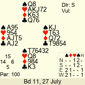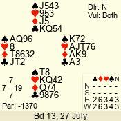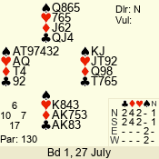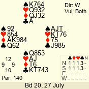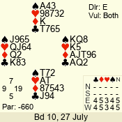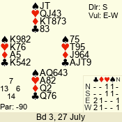 | Con | Dc | Res | Score | Ld | Pairs | Rd | Tbl | | 3 N | N | +1 | 630 | 8 | 20 - 19 | 2 | 20 |