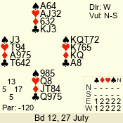 | Con | Dc | Res | Score | Ld | Pairs | Rd | Tbl | | 1 N | W | -2 | 200 | 4 | 04 - 13 | 12 | 4 |