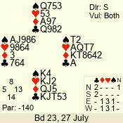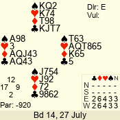 | Con | Dc | Res | Score | Ld | Pairs | Rd | Tbl | | 6 N | E | -1 | 100 | J | 16 - 12 | 5 | 16 |