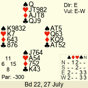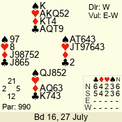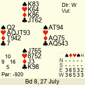 | Con | Dc | Res | Score | Ld | Pairs | Rd | Tbl | | 3 N | W | -4 | 200 | 2 | 04 - 16 | 9 | 4 |