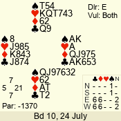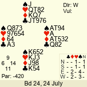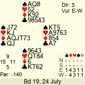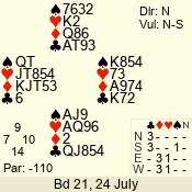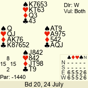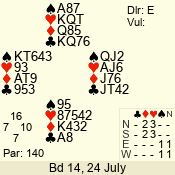 | 3 NT | W | +1 | -430 | T | 07 - 14 | 10 | 7 |