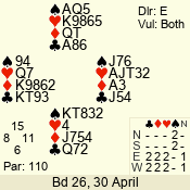 | Con | Dc | Res | Score | Ld | Pairs | Rd | Tbl | | 3 N | E | -3 | 300 | 2 | 02 - 07 | 12 | 2 |