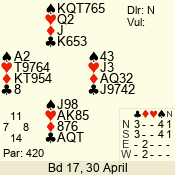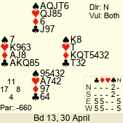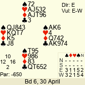 | Con | Dc | Res | Score | Ld | Pairs | Rd | Tbl | | 1 N | S | +2 | 150 | Q | 06 - 06 | 10 | 6 |