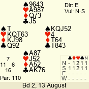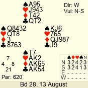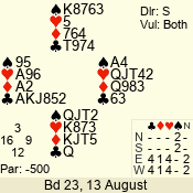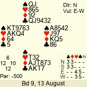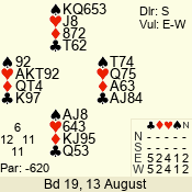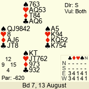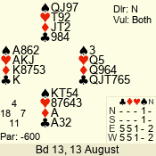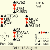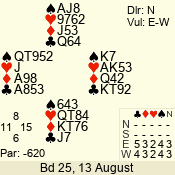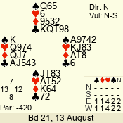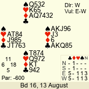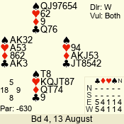 | Con | Dc | Res | Score | Ld | Pairs | Rd | Tbl | | 3 N | N | +1 | 630 | 4 | 03 - 04 | 7 | 3 |
