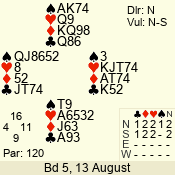 | Con | Dc | Res | Score | Ld | Pairs | Rd | Tbl | | 3 N | N | +1 | 630 | 4 | 03 - 04 | 7 | 3 |