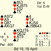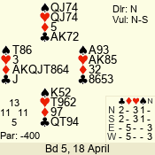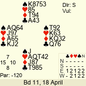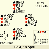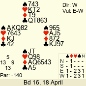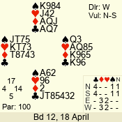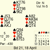 | 3 NT | E | +1 | -430 | 3 | 04 - 01 | 4 | 4 |