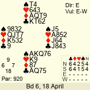 | Con | Dc | Res | Score | Ld | Pairs | Rd | Tbl | | 6 NT | E | -2 | 100 | 4 | 09 - 02 | 8 | 9 |