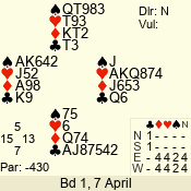 | 3 NT | E | +1 | -430 | 7 | 06 - 13 | 7 | 6 |