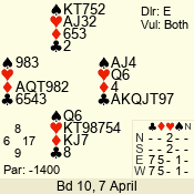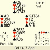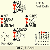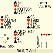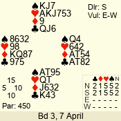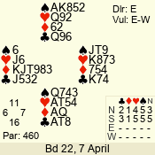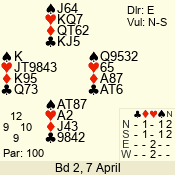 | 3 NT | S | +2 | 460 | 5 | 07 - 12 | 9 | 7 |