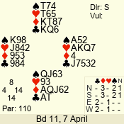 | 3 NT | W | +2 | -460 | 8 | 11 - 08 | 4 | 11 |
