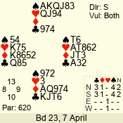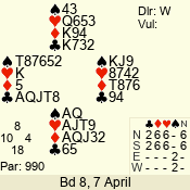 | 3 NT | W | +4 | -520 | 8 | 12 - 10 | 3 | 12 |