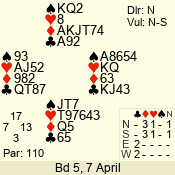 | 3 NT | W | +1 | -430 | 7 | 05 - 09 | 10 | 5 |