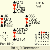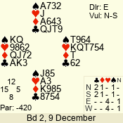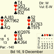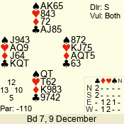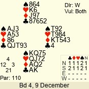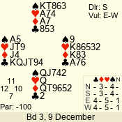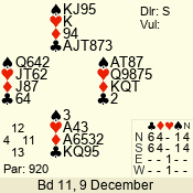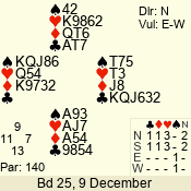 | Con | Dc | Res | Score | Ld | Pairs | Rd | Tbl | | 3 N | S | +4 | 720 | 6 | 07 - 04 | 4 | 7 |