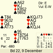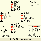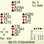 | Con | Dc | Res | Score | Ld | Pairs | Rd | Tbl | | 3 N | S | = | 600 | 3 | 07 - 12 | 9 | 7 |