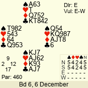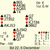 | 3 NT | E | +2 | -660 | 4 | 13 - 09 | 11 | 5 |